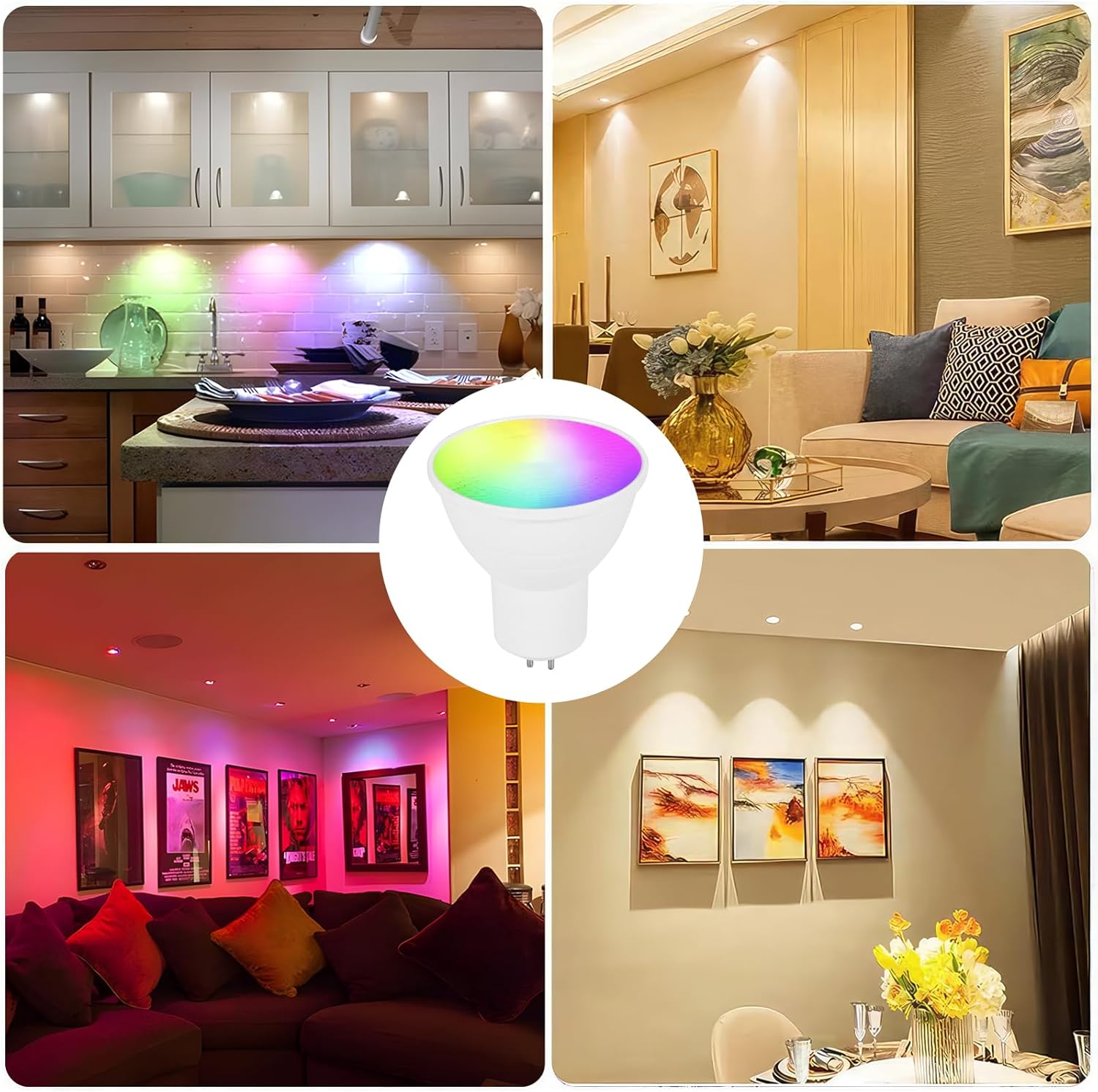 【Vibrant Colors, Customizable Atmosphere】Using advanced LED RGBW technology, this GU5.3 LED bulb offers 16 different light colors and 4 dynamic lighting modes. Effortlessly change the ambiance to suit any mood or occasion, whether it’s a family gathering or a festive celebration.