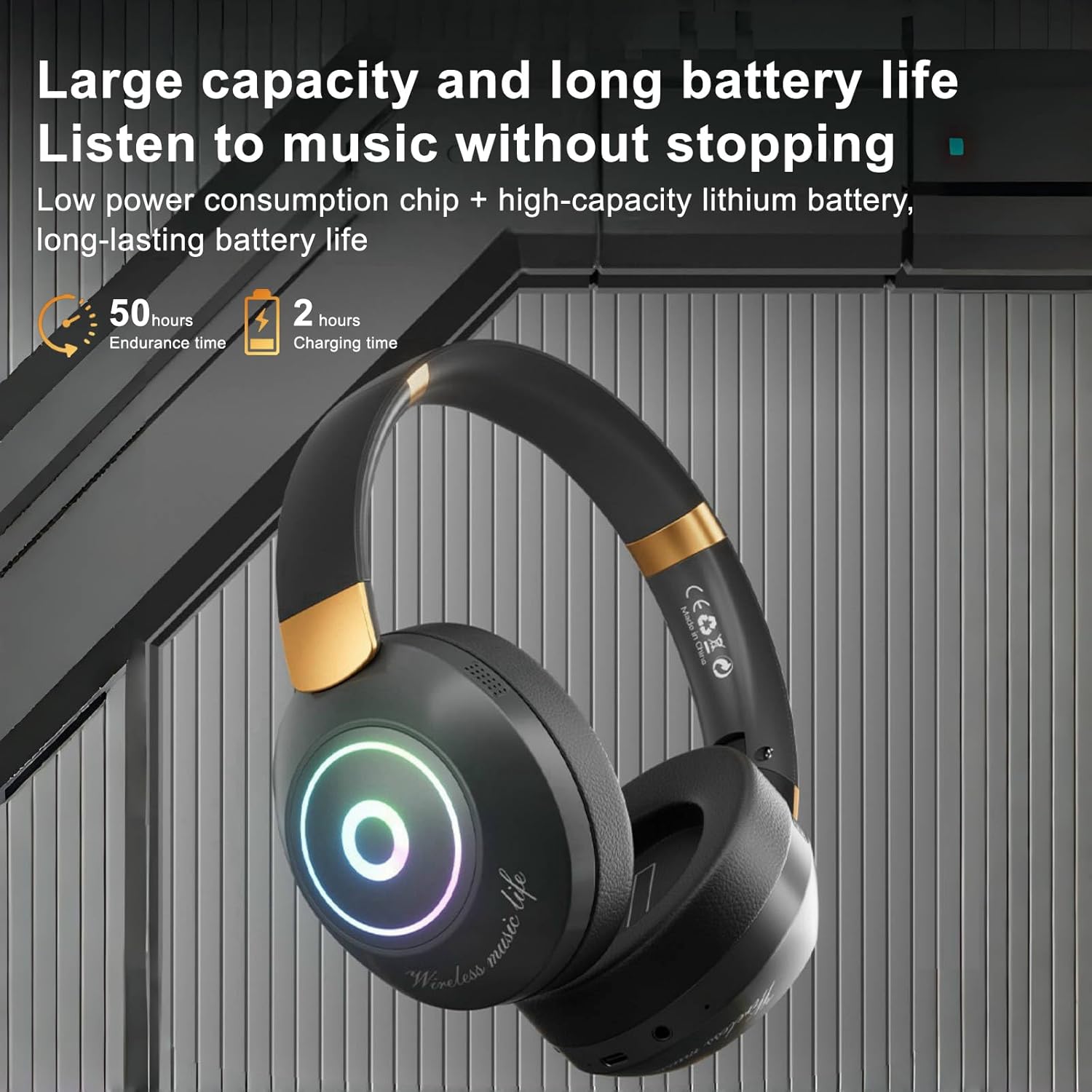 🎧【【Wide Compatibility】: This wireless over ear headphones are compatible with all Bluetooth or 3.5mm plug cable enabled devices.You can also use it as a wired headphone with the provided audio cable so the headphones will never power off. They also feature a set of LED lights that run around the edges of the earpiece for an awesome, stylish look!